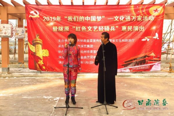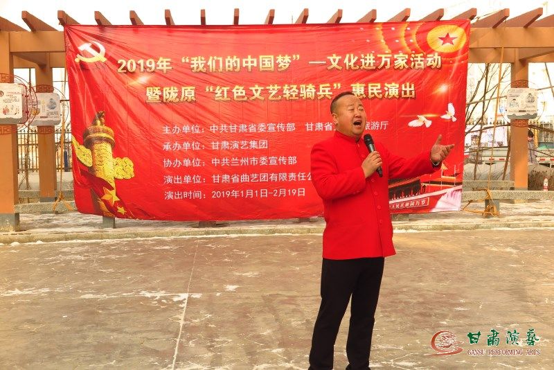 1月21日-22日由中共甘肅省委宣傳部、甘肅省文化和旅游廳主辦,甘肅演藝集團(tuán)承辦,中共蘭州市委宣傳部協(xié)辦,甘肅省曲藝團(tuán)有限責(zé)任公司作為演出單位的2019年“我們的中國夢”文化進(jìn)萬家暨隴原“紅色文藝輕騎兵”惠民演出活動走進(jìn)蘭州市青白石上坪村、安寧區(qū)和榆中縣城,用精彩的曲藝節(jié)目為群眾送去新春祝福,帶去黨和政府的關(guān)懷。