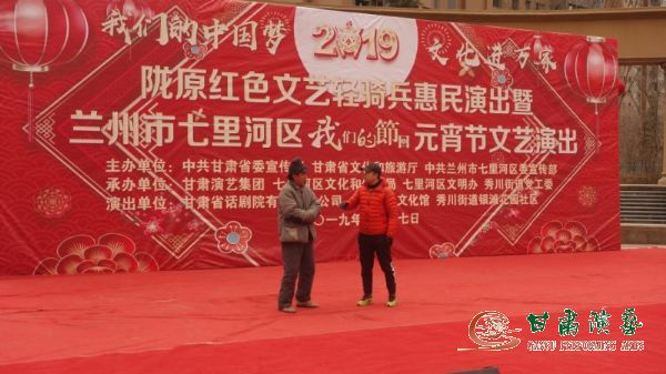 由甘肅省委宣傳部、甘肅省文化和旅游廳主辦、甘肅演藝集團(tuán)承辦的2019“我們的中國(guó)夢(mèng)”-----文化進(jìn)萬家暨隴原“紅色文藝輕騎兵”惠民演出繼續(xù)領(lǐng)跑,甘肅省話劇院隴原“紅色文藝輕騎兵”演出小分隊(duì)2月17日赴七里河區(qū)秀川街道銀灘花園為當(dāng)?shù)氐陌傩赵谡率迩八蜕狭艘粓?chǎng)精彩的文化“視聽盛宴”。