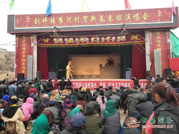 連日來,甘肅秦腔藝術劇院的演職人員克服連場演出勞累、天氣寒冷、條件艱苦等困難,在完成正月初二以來的多個地點的演出任務后,于2月22日從甘南臨潭縣古戰(zhàn)村轉戰(zhàn)秦安縣崔家河村為當?shù)厝罕娧莩?,連續(xù)為當?shù)厝罕娧莩?、大型秦腔優(yōu)秀傳統(tǒng)劇目忠保國》、《周仁回府》、《金沙灘》、《火焰駒》、《竇娥冤》、《趙氏孤兒》、《玉堂春》和秦腔經典折子戲《梳妝.掛畫》、《花云帶箭》、《殺廟》、《古城會》等。在為期6天12場的演出中,國家一級演員、梅花獎得主蘇鳳麗,國家一級演員賀忠宏、溫彩霞,劇院優(yōu)秀中青年演員陳永勝、郭凱杰、陳金芳、馬永紅、高二強等輪番登臺演出,讓當?shù)厝嗣袢罕娫诖汗?jié)期間享受到了一道道秦腔大餐,豐富了當?shù)厝嗣袢罕姷木裎幕睢?