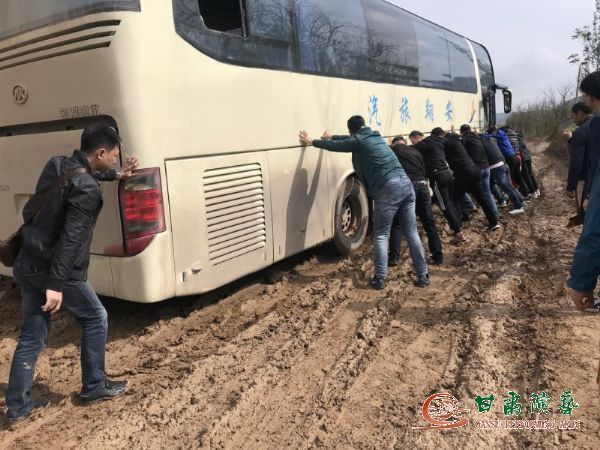 演出途中,連續(xù)的陰雨天氣造成路面濕滑,演出車輛深陷泥潭,無(wú)法駛向演出場(chǎng)地,省話劇院小分隊(duì)領(lǐng)導(dǎo)吳雪林、劉寧帶頭下車,拿鐵鍬、鏟淤泥,與演職人員一起同心協(xié)力把演出車輛從泥濘中推出。從而確保了演出的時(shí)間和效率。