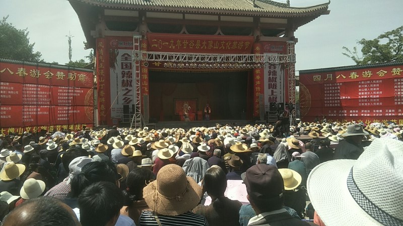 2019年5月9日晚8時(shí)30分,甘谷縣大象山,山前廣場(chǎng)上人山人海,異常擁擠,近3萬(wàn)名從甘谷縣各鄉(xiāng)鎮(zhèn)村組趕來(lái)的群眾正在這里入神地欣賞由甘肅秦腔藝術(shù)劇院演出的大型秦腔經(jīng)典劇目《竇娥冤》。