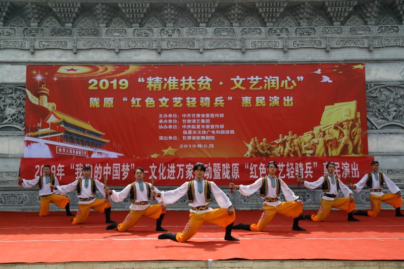 繼甘肅演藝集團2019年“我們的中國夢”——文化進萬家暨隴原“紅色文藝輕騎兵”省歌舞劇院小分隊惠民演出在舟曲落下帷幕之后,演職人員又精彩接力,于5月13日、14日分別在臨夏折橋鎮(zhèn)、東區(qū)街道、南龍鎮(zhèn)、茶馬古市傾情呈現(xiàn)四場高水準文藝節(jié)目,對今年惠民演出季予以別樣點綴,使得這個絢麗的季節(jié),成為當?shù)剜l(xiāng)親們難以忘卻的美好記憶。