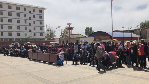 鎮(zhèn)子上的廣場人山人海,在聽到有演出的消息后,鄉(xiāng)親們立即圍了過來。看節(jié)目看得入迷的父老鄉(xiāng)親們把舞臺圍得水泄不通,讓演職人員們進(jìn)場都有些困難,這一幕讓省曲藝團(tuán)小分隊(duì)的演職人員們哭笑不得。