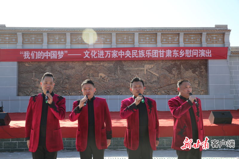 1月23日上午11時(shí),在地處大山深處的東鄉(xiāng)縣龍泉鄉(xiāng)拱北灣村文化廣場,中央民族樂團(tuán)拉開了首場演出的序幕;下午2時(shí),在東鄉(xiāng)縣民族會堂進(jìn)行了第二場演出,或大合唱、男女聲獨(dú)唱、男聲四重唱,或笛子獨(dú)奏、二胡齊奏、板胡獨(dú)奏,中央民族樂團(tuán)的優(yōu)秀音樂家、歌唱家輪番登臺,為現(xiàn)場觀眾帶來一個(gè)又一個(gè)精彩的節(jié)目,贏得觀眾一陣又一陣熱烈的掌聲;1月24日,中央民族樂團(tuán)又趕赴臨夏市南龍鎮(zhèn)馬家莊村、臨夏大劇院進(jìn)行了兩場演出,給觀眾帶去美的藝術(shù)享受。