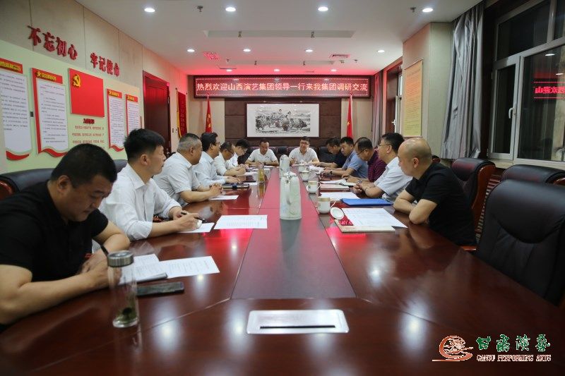 2019年6月17日上午,山西演藝集團(tuán)賀建平一行五人來甘肅演藝集團(tuán)調(diào)研交流。集團(tuán)黨委書記、董事長(zhǎng)陳其銀,黨委委員、紀(jì)委書記張政權(quán),集團(tuán)中層干部參加研討交流會(huì)。