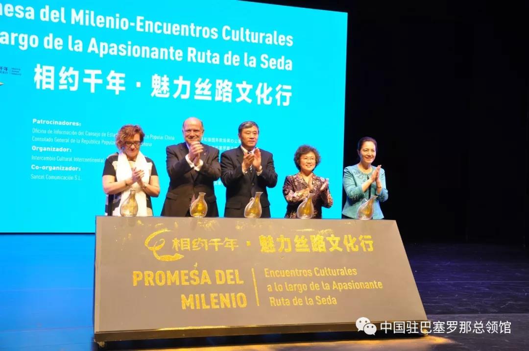 2019年6月28日,由國(guó)務(wù)院新聞辦公室和駐巴塞羅那總領(lǐng)館共同主辦的“相約千年·魅力絲路文化行”大型演出在加泰羅尼亞民族劇院成功舉行。中共中央宣傳部副部長(zhǎng)孫志軍、駐巴塞羅那總領(lǐng)事林楠、甘肅省省委宣傳部部長(zhǎng)陳青、西班牙中央政府駐加泰羅尼亞自治區(qū)(以下簡(jiǎn)稱“加區(qū)”)副代表薩瓦特、巴塞羅那市政議員巴利亞林、加區(qū)警察中央?yún)f(xié)調(diào)部最高長(zhǎng)官曼雷薩、巴塞羅那海軍指揮總長(zhǎng)巴隆、國(guó)家警察巴塞羅那省情報(bào)部長(zhǎng)科托,當(dāng)?shù)厣探纭⑽幕?、體育界友人、駐巴塞羅那領(lǐng)團(tuán)及僑界代表等800余人觀看了演出。