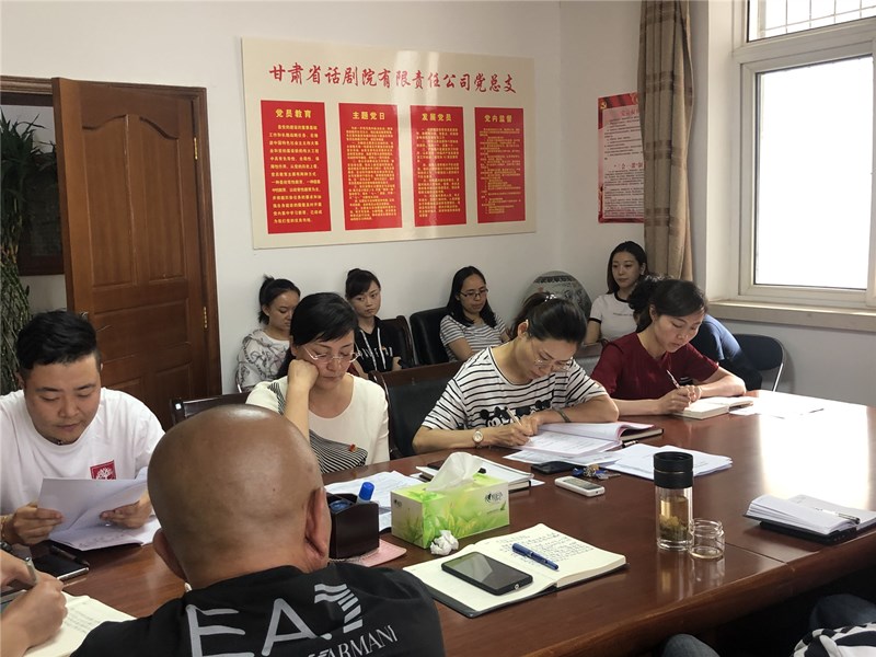 2019年7月16日,甘肅演藝集團話劇院(甘肅兒童劇院)召開“不忘初心,牢記使命”主題教育理論學習研討會,集中學習《習近平“不忘初心、牢記使命”重要論述選篇》和《學習強國》部分篇目。黨總支書記劉寧、黨總支委員許蕊和全體黨員緊密聯(lián)系個人思想、工作實際,圍繞“從嚴治黨、理想信念、宗旨性質、擔當作為、政治紀律、政治規(guī)矩、黨性修養(yǎng)、廉潔自律”8個專題逐一進行了交流發(fā)言。