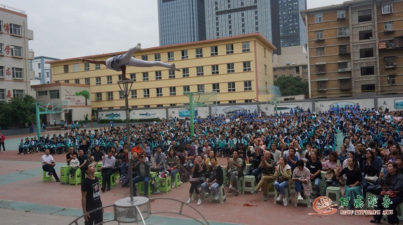 演出以傳統(tǒng)雜技表演為主,融合了歌舞、滑稽等多種藝術(shù)元素。在場的全體師生們聽之,樂之,醉之,報之以熱烈的掌聲。雜技表演驚險刺激、跌宕起伏,扣人心弦;男聲獨唱聲音渾厚、氣息通暢、感情真摯;女聲獨唱音色甜美純凈、頗具質(zhì)感與穿透力。