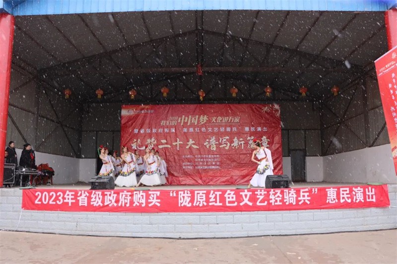 由中共甘肅省委宣傳部、甘肅省文化和旅游廳主辦,甘肅演藝集團(tuán)承辦,甘肅演藝集團(tuán)歌舞劇院演繹的2023年“我們的中國夢”——文化進(jìn)萬家暨隴原紅色文藝輕騎兵演出活動精彩繼續(xù)。4月2日至4日,三天六場演出,讓白銀市平川區(qū)寶積鎮(zhèn)、共和鎮(zhèn)、水泉鎮(zhèn),白銀市靖遠(yuǎn)縣東灣鎮(zhèn)楊柳村、大蘆鎮(zhèn)大蘆村、烏蘭鎮(zhèn)營房村的鄉(xiāng)親們沉浸式體驗了新時代文藝繁榮的累累碩果,一場場家門口的“文化盛宴”獲得了父老鄉(xiāng)親們的一致好評。