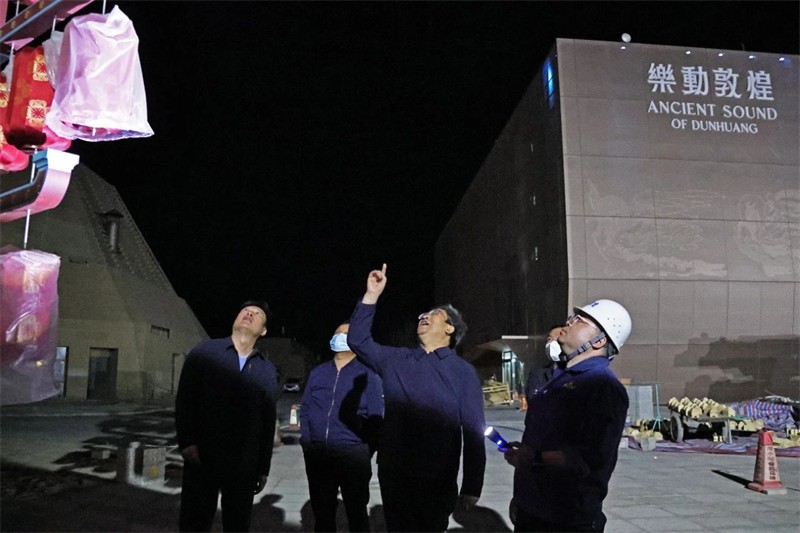五天時(shí)間里陳其銀一行深入樂(lè)動(dòng)敦煌劇場(chǎng)、上元市集詳細(xì)了解項(xiàng)目進(jìn)展情況,實(shí)地查看了項(xiàng)目建設(shè)現(xiàn)場(chǎng)及劇場(chǎng)舞臺(tái)裝臺(tái)情況,并觀看了節(jié)目排練預(yù)演,與文旅公司領(lǐng)導(dǎo)就項(xiàng)目進(jìn)展情況進(jìn)行了深入溝通,聽(tīng)取了項(xiàng)目建設(shè)和運(yùn)營(yíng)相關(guān)工作匯報(bào),詳細(xì)詢問(wèn)了聯(lián)排關(guān)鍵節(jié)點(diǎn)和主要運(yùn)營(yíng)指標(biāo),探討交流項(xiàng)目建設(shè)進(jìn)展中存在的問(wèn)題,研究解決措施。并提出了指導(dǎo)意見(jiàn)和具體要求。