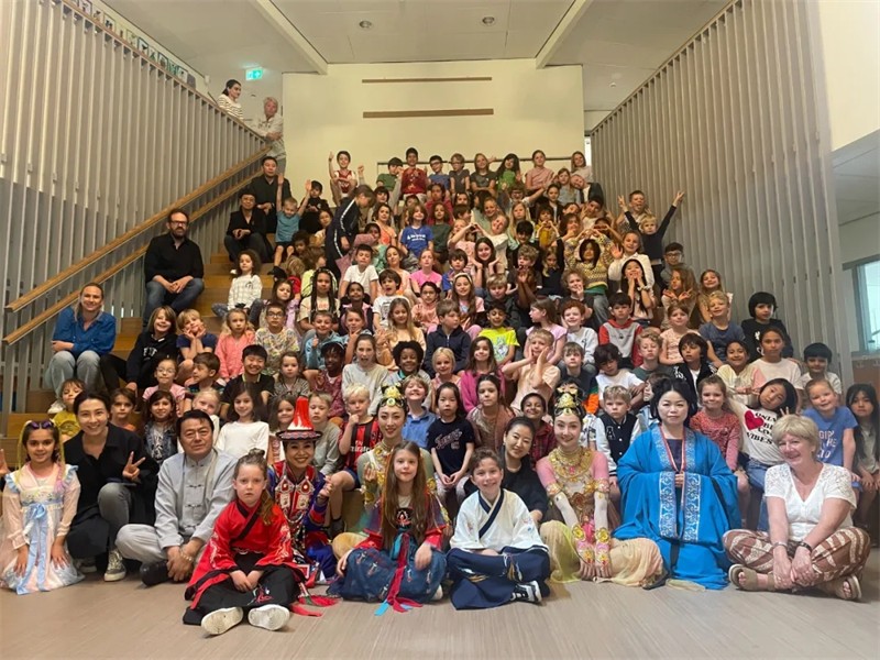 5月15日,三位藝術(shù)家與代表團應(yīng)邀在海牙阿姆斯特爾芬學(xué)校向上百名兒童,進行了古琴和敦煌舞蹈展示,與孩子們展開體驗式互動交流,指導(dǎo)孩子們親身體驗古琴與敦煌舞的魅力。
