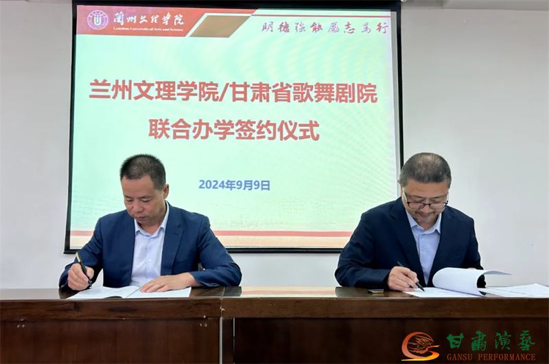 為進(jìn)一步深化校企合作,共同探索育人用人新路徑,9月9日,甘肅演藝集團(tuán)歌舞劇院與蘭州文理學(xué)院合作辦學(xué)簽約暨授牌儀式在蘭州文理學(xué)院音樂舞蹈學(xué)院會議室成功舉行,標(biāo)志著雙方在合作辦學(xué)上邁入了新的步伐,進(jìn)入了實(shí)質(zhì)性階段。校企雙方領(lǐng)導(dǎo)及相關(guān)部門負(fù)責(zé)人參加此次活動。