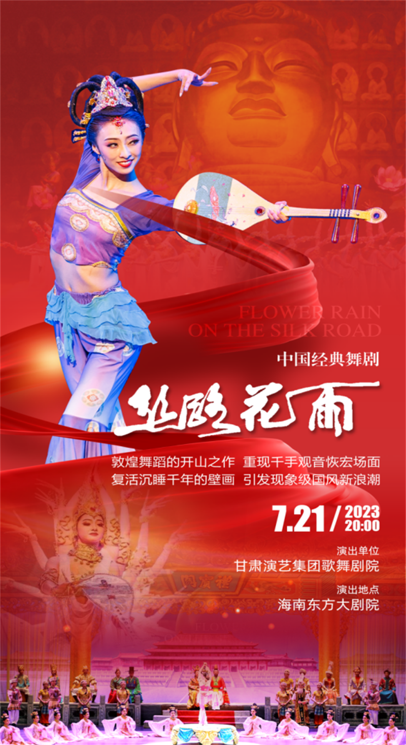 敬請期待7月21日海南東方大劇院與中國經(jīng)典舞劇《絲路花雨》聯(lián)袂奉獻的藝術盛宴,共同領略古絲綢之路繁榮昌盛的輝煌景象,感受敦煌文化的博大精深。