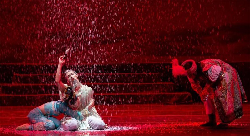 伊努斯奉命使唐并帶英娘歸國,英娘捧美酒祭灑天地,告別親如故土的波斯。