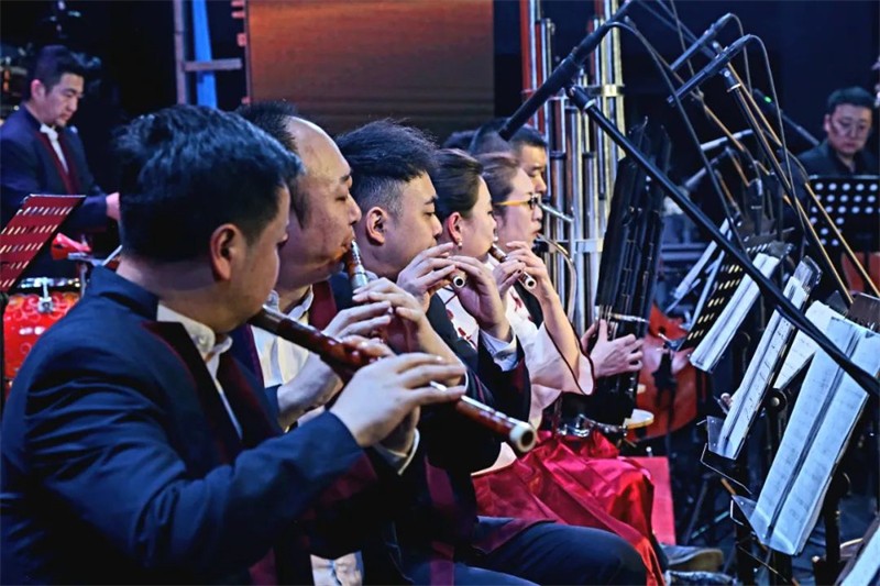 為了提升民族交響盛宴的觀賞性和藝術性,本場演出采用現(xiàn)代手法演繹民族經(jīng)典音樂作品,涵蓋民族管弦樂《慶典序曲》《花兒主題隨想》《七彩之和》《風之歌》《春華秋實》《歡樂歌》《金蛇狂舞》《絲綢之路》、女聲二重唱《節(jié)日歡歌》、男聲獨唱《草原上升起不落的太陽》、女聲獨唱《蘆花》及二胡齊奏《新賽馬》等,用現(xiàn)代音樂元素展示民族音樂的無限魅力。這一晚美麗的“銅城”白銀,不僅有九曲黃河與絲綢之路交匯融合,還有歡聲笑語和動人音符交織飛揚,更有滿懷祝福與美好期冀交融共存!