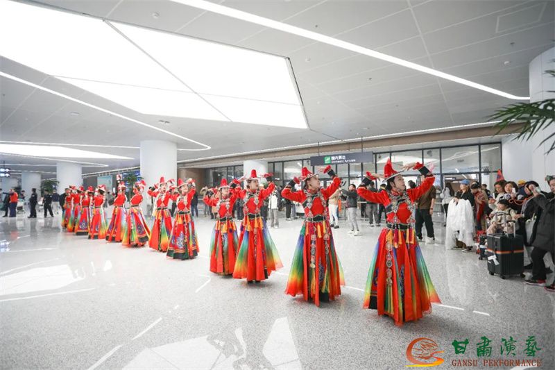 為使旅客和觀眾在這一新城市地標(biāo)建筑中感受不一樣的西北韻味,本次演出匠心獨(dú)運(yùn)注重“創(chuàng)意+體驗(yàn)”,在出發(fā)大廳、到達(dá)大廳、連廊大廳設(shè)三個(gè)快閃點(diǎn),交通樞紐大廳設(shè)置展演舞臺(tái),《絲路花雨》經(jīng)典片段《金光千佛》拉開(kāi)活動(dòng)序幕,舞者身披金色華服,以曼妙舞姿再現(xiàn)莫高窟壁畫中“千佛齊現(xiàn)”的恢宏場(chǎng)景,祈愿往來(lái)游客起落平安,《反彈琵琶長(zhǎng)綢舞》演員手持琵琶翩然起舞,長(zhǎng)綢翻飛間,敦煌藝術(shù)的靈動(dòng)與絲路文明的交融之美躍然眼前,跨越千年的石窟藝術(shù)與航站樓現(xiàn)代設(shè)計(jì)交相輝映,引得旅客紛紛駐足拍攝,裕固族舞蹈《歡騰的草原》展現(xiàn)甘肅人民的熱情好客、淳樸熱情以及甘肅豐富的歷史文化和民俗風(fēng)情,《玄奘西行》《雪域歡歌》《花兒美》則展現(xiàn)出甘肅多元文化的美妙厚重與自然風(fēng)光的壯美神秘。隨著《我把甘肅唱給你聽(tīng)》的旋律漸息,這場(chǎng)跨越時(shí)空的藝術(shù)之旅圓滿落幕,中川機(jī)場(chǎng)T3航站樓化身“流動(dòng)的藝術(shù)展廳”,把“交響絲路·如意甘肅”的壯美畫面描繪在了每一位旅客心中。