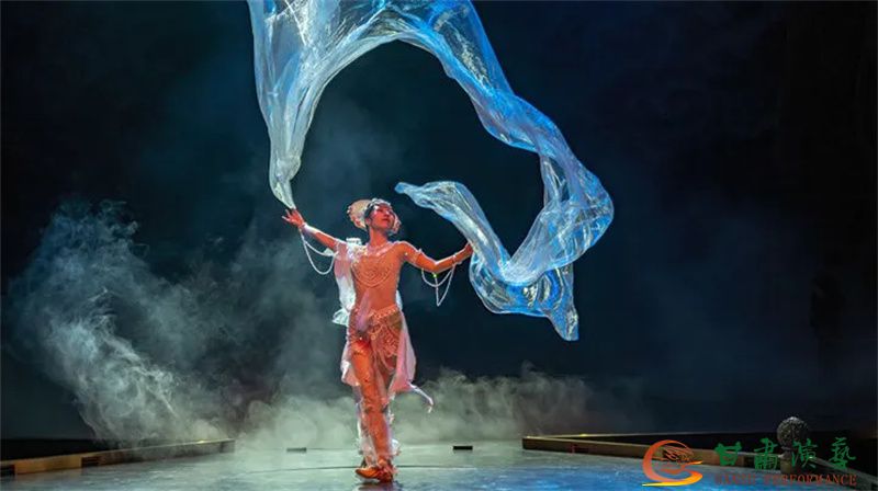 飛紗飛天汲取了敦煌壁畫中飛天元素精華,飛紗既是裝飾,也是飛天的一縷靈魂。當(dāng)姿態(tài)各異的飛紗與飛天舞者在舞臺(tái)上共舞,隨風(fēng)飄動(dòng)的飄帶、踏樂(lè)而舞的舞者,仿佛帶我們穿越千年,回到了古老的敦煌,喚醒了沉睡千年的記憶。