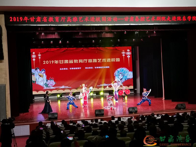 2019年12月7日以來,甘肅演藝集團秦腔藝術劇院分別赴甘肅工業(yè)職業(yè)技術學院、甘肅機電職業(yè)技術學院、天水師范學院、甘肅林業(yè)職業(yè)技術學院、隴東學院、甘肅建筑職業(yè)技術學院、甘肅財貿職業(yè)學院、甘肅現代職業(yè)技術學院和河西學院等9所院校舉辦了“2019年甘肅省教育廳高雅藝術進校園”演出活動,共有五千余名師生在現場了解了家級非物質文化遺產板胡項目——甘肅秦腔(西秦腔)發(fā)展歷史、各行當的特色及表演技巧,同時欣賞了秦腔經典劇目清唱、折子戲片段表演、舞蹈、器樂獨奏、變臉及戲曲技巧展示。