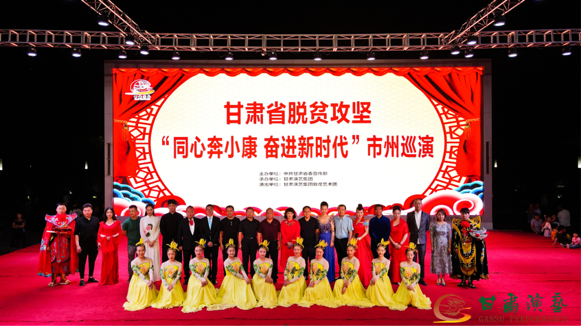 2020年6月28日晚,甘肅演藝集團敦煌藝術(shù)團在張掖市高臺縣水之印廣場開展甘肅省脫貧攻堅“同心奔小康 奮進新時代”市州巡演活動。院團演職人員把一場高質(zhì)量、高水準的精彩文藝盛宴奉獻給了高臺縣的父老鄉(xiāng)親們。
