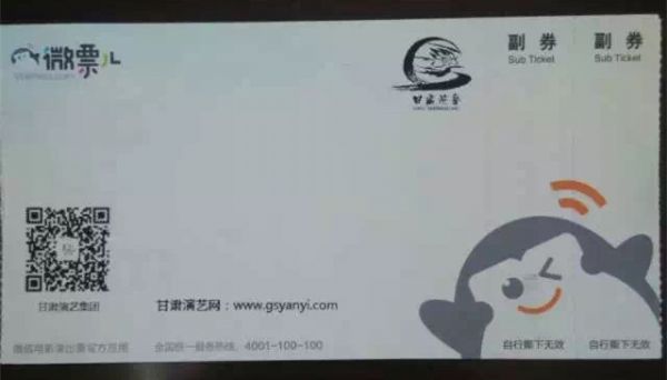 為方便統(tǒng)一識(shí)別、鑒別真?zhèn)?,協(xié)商制定的票樣上印有甘肅演藝集團(tuán)logo、公眾微信號(hào)二維碼及甘肅演藝網(wǎng)網(wǎng)址(www.hbxxhg.com)和6種防偽標(biāo)識(shí)。