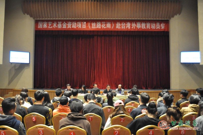 10月21日下午3時,在甘肅省歌舞劇院敦煌樂宮演藝廳,召開了舞劇《絲路花雨》赴臺灣演出行前外事教育動員會。甘肅省臺辦相關(guān)負責人出席做動員講話并進行了外事安全教育。