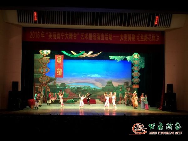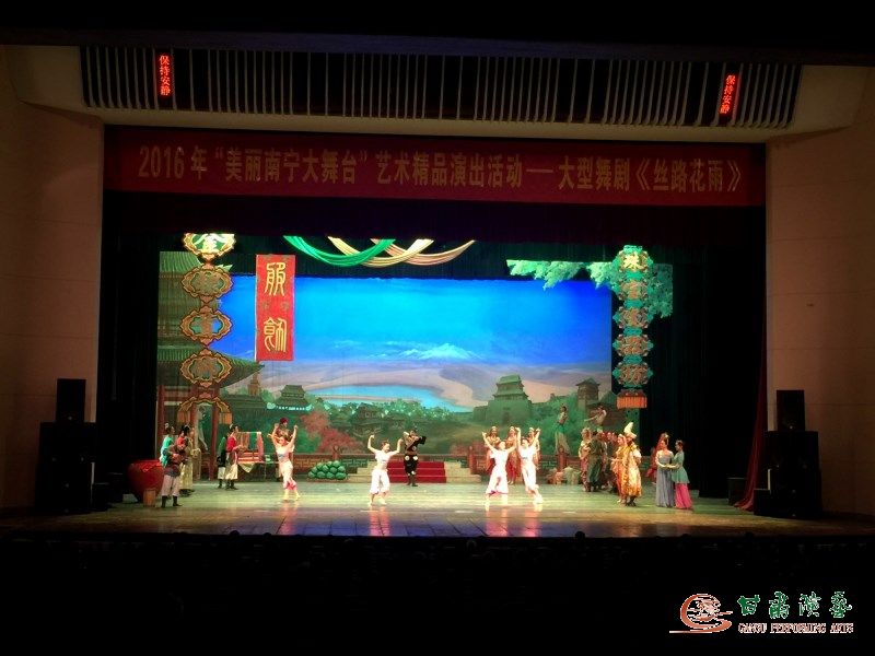 另悉,從“慶祝香港回歸19周年”專場(chǎng)演出到“首屆絲綢之路(敦煌)國際文化博覽會(huì)”開幕式演出,再到臺(tái)灣佛光山、中央黨校、閩粵浙“高雅藝術(shù)進(jìn)校園”以及該場(chǎng)“美麗南寧大舞臺(tái)”演出等,半年時(shí)間內(nèi),《絲路花雨》行程數(shù)萬里,不僅以自身美麗舞姿裝點(diǎn)了所到之處每一寸土地與每一顆心靈,而且也充分發(fā)揮出了傳遞友好和平主題及“一帶一路”偉大思想的文化使者功能,堪稱一次無比輝煌的文化之旅。臨近歲末年關(guān),《絲路花雨》稍作歇息,又將再次奔赴神秘美麗敦煌,履行全新的神圣使命。在此,我們虔誠祝愿,世紀(jì)經(jīng)典再鑄不朽神話?。▓D文由省歌舞劇院提供)