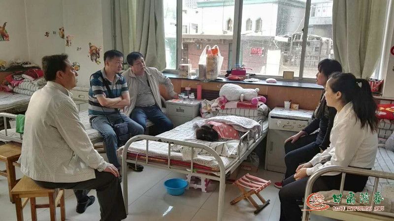 2016年5月5日下午,甘肅省京劇院領(lǐng)導(dǎo)班子及部分中層干部、“雙聯(lián)專干”赴蘭州市中醫(yī)腦病康復(fù)醫(yī)院腦科醫(yī)院探望了來(lái)自省京劇院“雙聯(lián)”點(diǎn)天水市清水縣永清鎮(zhèn)樊?{村幫扶戶祁得新來(lái)蘭州治療疾病的孫女祁瑩,并為他們送去了慰問(wèn)品、500元慰問(wèn)金。祁瑩非常感動(dòng),表示一定配合治療,不辜負(fù)省委省政府以及省京劇院的幫助。(圖文由省京劇院提供)