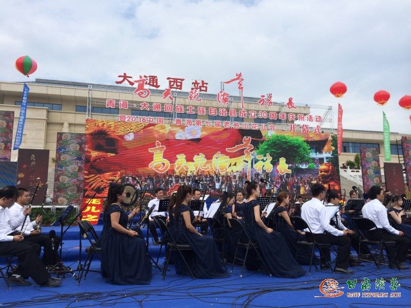 7月的青藏高原,火熱的太陽盡情揮灑著熾烈的滾燙,大地仿佛即將燃燒。然而,在 “青?!ご笸ɑ刈逋磷遄灾慰h成立30周年慶典活動(dòng)暨2016中國·青海第七屆老爺山花兒會(huì)”《高天花海幸福長》大型廣場(chǎng)綜藝演出現(xiàn)場(chǎng),甘肅省歌舞劇院《絲路花雨》民族管弦樂團(tuán)精彩絕倫的表演,則如天籟之音和縷縷清風(fēng),讓各方來賓及觀眾心頭的酷熱在美妙旋律間漸次散去,安享節(jié)日的歡樂。