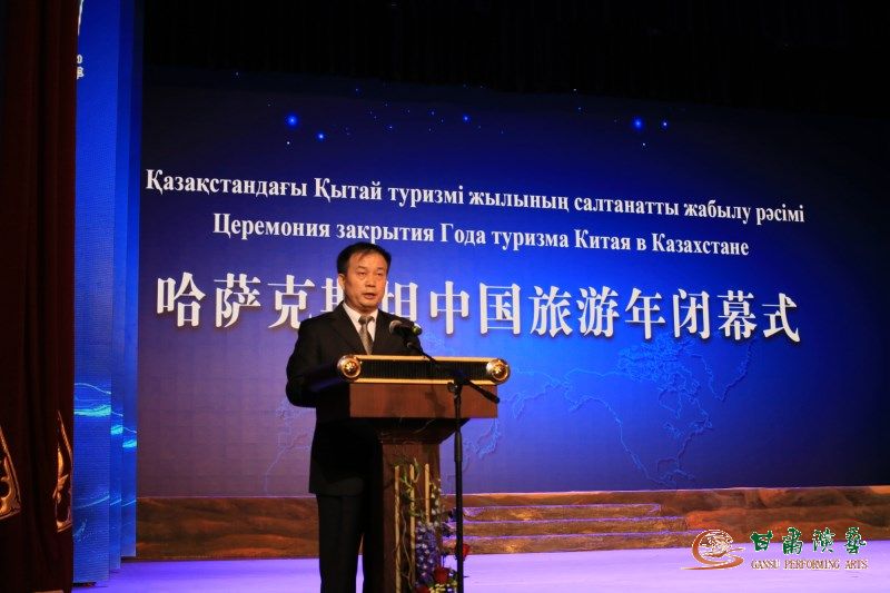 2017年11月17日晚,哈薩克斯坦首都阿斯塔納“和平和諧宮”華燈璀璨,歡聲雷動,座無虛席。為慶祝2017哈薩克斯坦“中國旅游年”活動圓滿閉幕,甘肅省歌舞劇院受中國國家旅游局邀請,在新疆吐魯番歡樂盛典文化旅游發(fā)展有限公司大力支持下,中國經(jīng)典舞劇《絲路花雨》劇組一行80人,赴“一帶一路”國家戰(zhàn)略沿線要地——友好鄰邦哈薩克斯坦,為中哈兩國政府官員、相關(guān)企業(yè)代表及對華友好人士等千余名觀眾獻(xiàn)上了一場精彩絕倫的演出,在哈薩克斯坦引起了不小轟動,中國國家旅游局副局長杜江、哈文化體育部副部長科扎加帕諾夫、中國駐哈大使張漢暉出席活動并致辭。這是舞劇《絲路花雨》繼今年元月份赴亞美尼亞、白俄羅斯參加  “歡樂春節(jié)”演出之后的又一重大對外文化交流演出,再次為祖國爭得了榮譽(yù)。