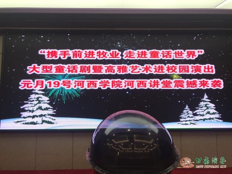 2017年12月15日,第二屆高雅藝術(shù)進校園活動既兒童劇走進張掖專場演出正式啟動,于2018年1月19、20、21日在張掖河西學(xué)院隆重上演!此次受甘肅草莓文化傳媒有限公司的邀請,繼第一屆“高雅藝術(shù)進校園”走進張掖之后,甘肅省話劇院又精選了兩部更加優(yōu)秀的兒童劇再次走入張掖。