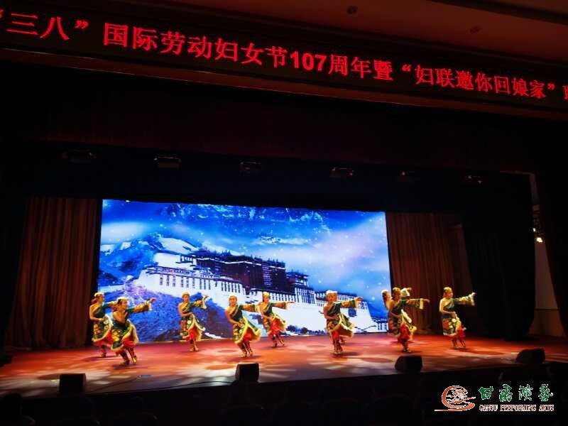 此次聯(lián)誼會(huì)由甘肅省婦聯(lián)主辦,甘肅省隴劇院“全省巾幗建功標(biāo)兵”趙丹等演出藏族舞蹈《扎西德勒》。此外還有“全省五四獎(jiǎng)?wù)孪冗M(jìn)個(gè)人”演唱歌曲《春暖花開》、“全國最美家庭”表演情景劇《我的幸福有密碼》、“甘肅省三八紅旗集體省第三人民醫(yī)院”表演詩歌朗誦《青春萬歲》、“省女企業(yè)家聯(lián)合會(huì)會(huì)員”表演旗袍秀《風(fēng)華幽香》、“全國三八紅旗手”京劇演唱《大唐貴妃主題曲》等。(圖文由省隴劇院提供)