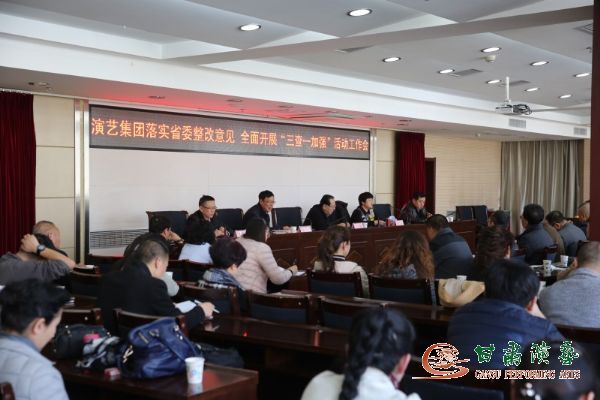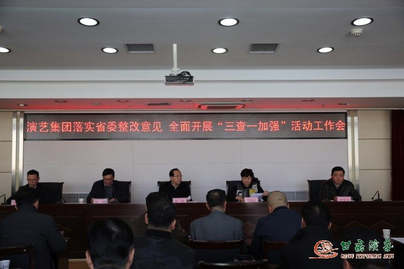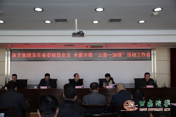 為嚴(yán)格落實省委《關(guān)于中央第三巡視組開巡視“回頭看”情況反饋意見的整改落實方案》任務(wù)要求,2017年3月3日,甘肅演藝集團(tuán)召開了全面開展“三查一加強(qiáng)”活動(查制度規(guī)章,查問題漏洞,查學(xué)習(xí)教育,加強(qiáng)黨風(fēng)廉政建設(shè))為主的整改工作會議。