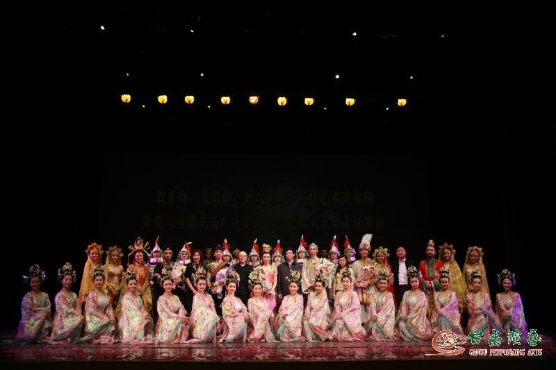 美好的時光總尤顯短暫,當(dāng)《絲路花雨》在漫天花雨中華彩落幕時,南航在場師生們無不感慨時光如梭,意猶未盡。該校領(lǐng)導(dǎo)也和此次演出帶隊領(lǐng)導(dǎo)甘肅省歌舞劇院舞臺總監(jiān)、副院長張稷展開了親切交談,感謝甘肅省歌舞劇院將如此高雅的舞劇作品呈獻(xiàn)給了南航師生,使他們浸醞其中深受感染,也希望有機會再次欣賞到《絲路花雨》。此外,據(jù)張稷副院長、辦公室主任張沛稱,該劇之所以能幾十年來經(jīng)久不衰、享譽四方,除了劇目本身鮮明獨特而具深邃內(nèi)涵的主題及舞蹈形式占盡先機外,最主要的因素之一,就是甘肅省歌舞劇院長期以來一直秉承“精品藝術(shù)是在不斷打磨中成長起來的”這一核心理念,對該劇進行不斷的精細(xì)化深度加工,使得該劇傳統(tǒng)的精華得以繼續(xù)傳承、不足之處得以彌補并有所創(chuàng)新,于是經(jīng)典才愈成經(jīng)典,廣大中外觀眾喜愛程度不斷高漲,以至于觀看該劇演出一票難求的現(xiàn)象時有發(fā)生。鑒于此種局面,甘肅省歌舞劇院將更加精益求精,除繼續(xù)以更豐富的舞臺形式展現(xiàn)《絲路花雨》風(fēng)采外,也將圍繞該劇潛心打造多媒體數(shù)字化方向系列衍生藝術(shù)作品,更好地為長期以來給了甘肅省歌舞劇院以該劇為中心的各項藝術(shù)事業(yè)大力支持與關(guān)愛的廣大中外觀眾朋友們提供更加多元化的藝術(shù)享受。(圖文由甘肅省歌舞劇院提供)
