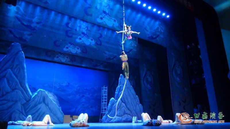 6月20日晚,大型雜技樂舞劇《敦煌神女》在黃河劇院首演獲得了各地游客觀眾以及蘭州本土觀眾的熱烈歡迎。《敦煌神女》以古絲綢之路文化為背景,以雜技技巧為核心,集歌舞、魔術(shù)、武術(shù)、威亞特技等多種藝術(shù)元素為一體,打造出富有后現(xiàn)代意味新型綜合藝術(shù)模型。作為雜技劇,除了運用聲光電等現(xiàn)代科技外,在沙漠、駱駝、古樹、莫高窟壁畫、大佛的舞美布景中,高難驚險的雜技技巧、奇妙莫測的魔術(shù)變化,服裝絢麗多彩的“傘舞”、“敦煌舞”、“波斯舞”, 更是將“千手觀音”、“飛天”等經(jīng)典敦煌舞蹈融入其中貫穿全劇,使得演出場面逼真、驚險、唯美、奇幻、壯觀,讓觀眾仿佛身臨其境,賞心悅目。