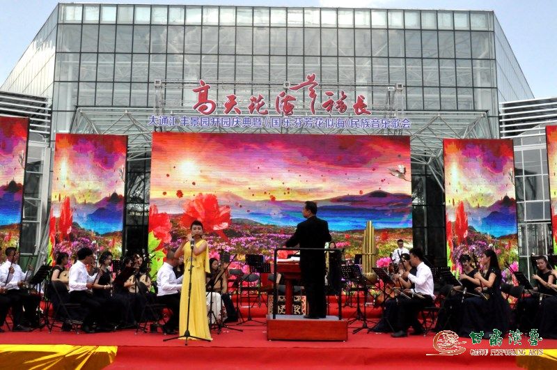 大通匯豐景園系青海省投巨資開發(fā)的集花海觀光休閑、民間藝術(shù)欣賞、智慧田園體驗(yàn)于一體的大型現(xiàn)代化農(nóng)業(yè)產(chǎn)業(yè)園,其開園慶典備受各界關(guān)注。為使本次慶典呈現(xiàn)高規(guī)格高水準(zhǔn),與甘肅省歌舞劇院曾有過多次合作的活動(dòng)承辦方——青??v橫文化藝術(shù)(集團(tuán))發(fā)展有限公司,再度盛邀此前已在青海人民心中留下美好印象的該院“絲路花雨”民族管弦樂團(tuán)進(jìn)行盛大演出。為不負(fù)厚望,15日,距開演時(shí)間尚早,擔(dān)任本次演出指揮的甘肅省歌舞劇院黨總支書記、著名作曲家楊亦兵即不顧烈日炎炎,以高度責(zé)任心組織大家多次試音排練,及至中午時(shí)分景園開園啟動(dòng)儀式過后,一曲歡快悅耳的《慶典序曲》拉開演出序幕時(shí),全團(tuán)演職人員的優(yōu)良作風(fēng)及精湛技藝贏得了臺(tái)下觀眾此起彼伏的叫好贊譽(yù)聲。
