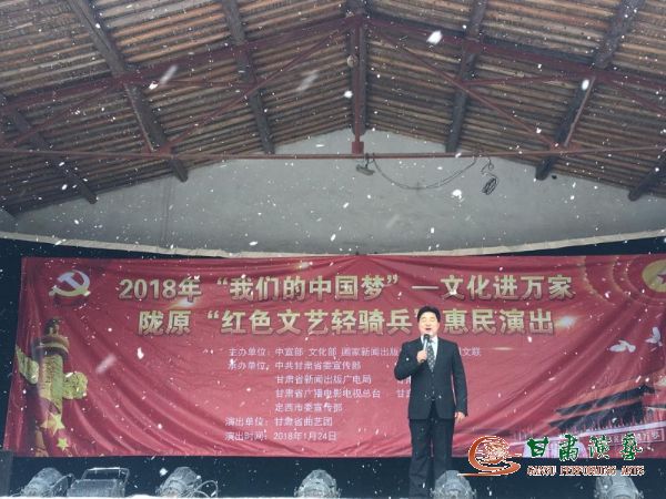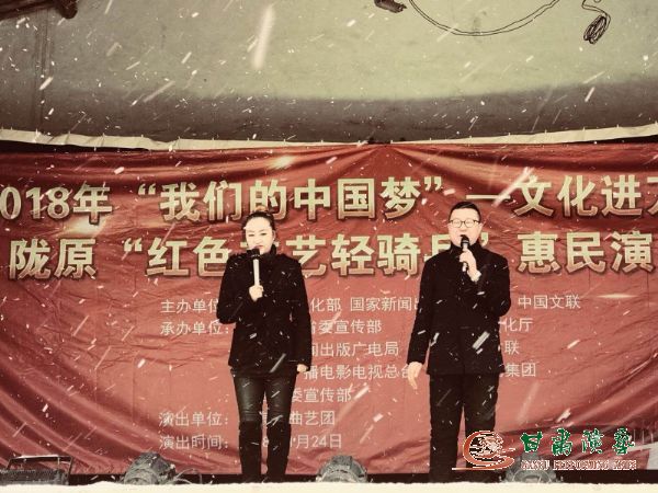 2018年1月24日早上七點(diǎn),甘肅省曲藝團(tuán)一眾演職人員披星戴月,頂著嚴(yán)寒與風(fēng)雪前往定西市安定區(qū)新集鄉(xiāng)開展惠民演出活動(dòng)。
