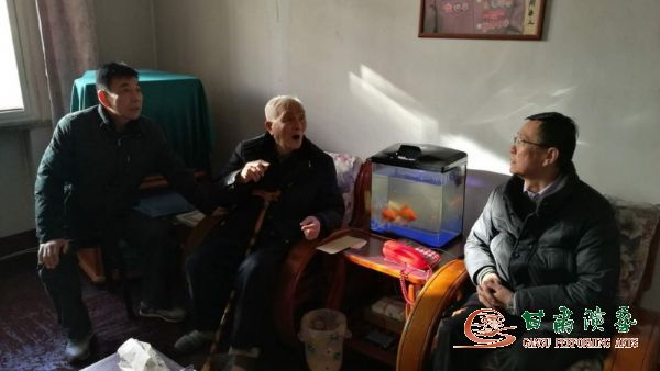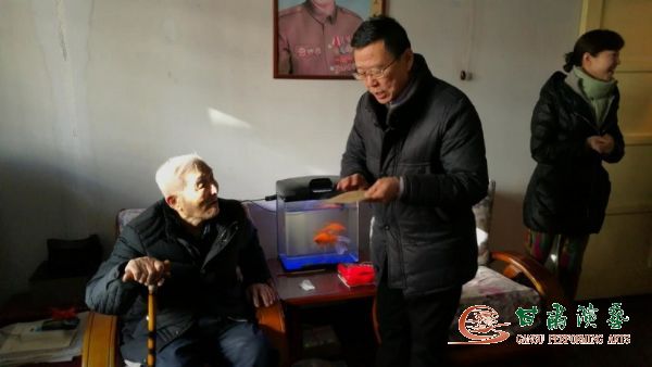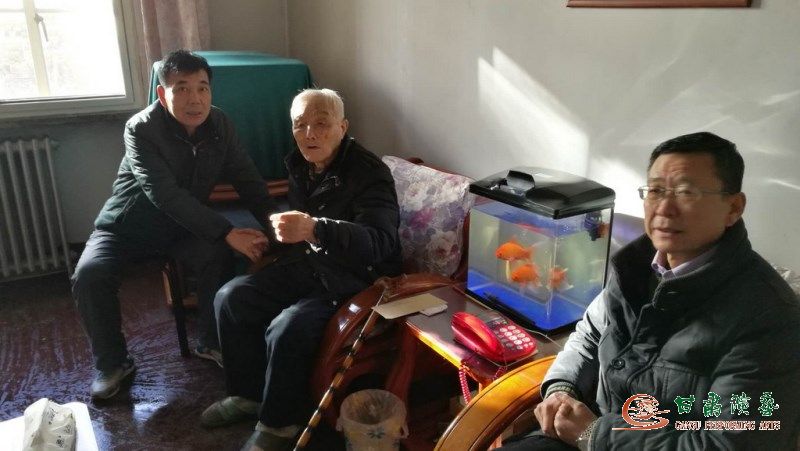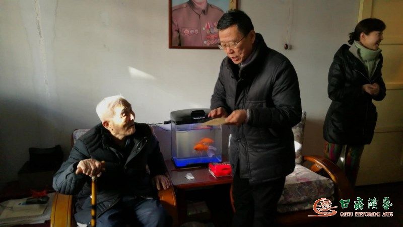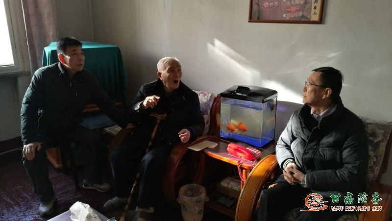 2018年2月11日(農(nóng)歷臘月二十六)時至春節(jié),甘肅省演藝集團(tuán)藝術(shù)總監(jiān)胡豫川同志、集團(tuán)黨支部書記強(qiáng)生愛同志、集團(tuán)辦公室副主任,一早就趕到甘肅省雜技團(tuán),帶著演藝集團(tuán)全體干部職工的深情厚誼,敲開了雜技團(tuán)92歲離休老干部趙宜秋同志的家門,把春節(jié)的問候和祝福送給了他。