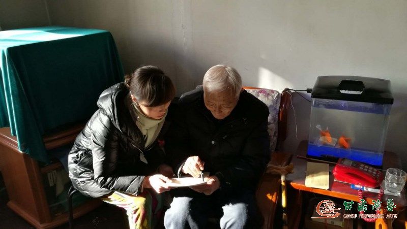92歲高齡的趙宜秋同志,是雜技團(tuán)的創(chuàng)始人、第一任團(tuán)長?,F(xiàn)在步履蹣跚的老革命趙宜秋同志,聽說集團(tuán)領(lǐng)導(dǎo)要來給他拜年,他和85歲高齡的老伴迎候在門上。見到集團(tuán)領(lǐng)導(dǎo),老兩口高興的合不攏嘴。