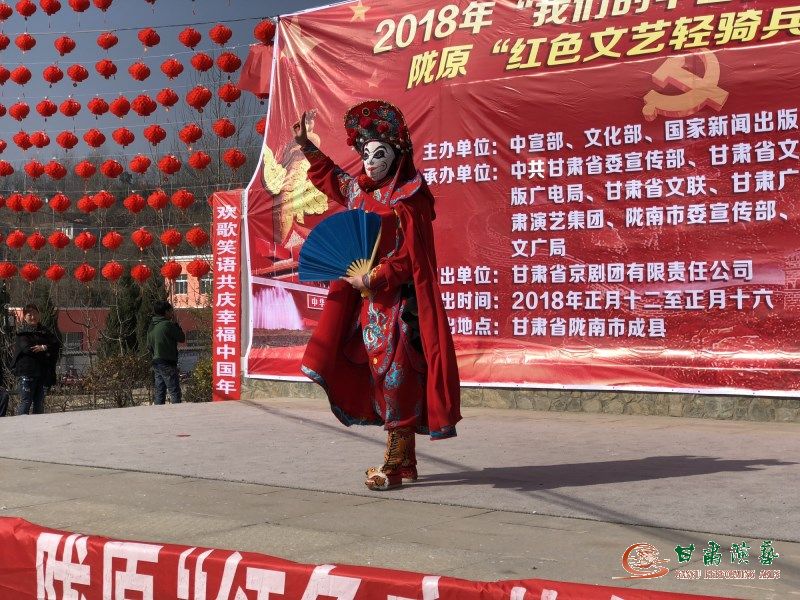 2018年2月28日上午,隴南市成縣陳院鎮(zhèn)武家山村中一片歡聲笑語(yǔ)。甘肅省京劇院“紅色小分隊(duì)”在這里為村民們獻(xiàn)上了“我們的中國(guó)夢(mèng)”文化進(jìn)萬(wàn)家暨隴原“紅色文藝輕騎兵”惠民演出。