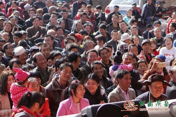 結(jié)束了蘇峽村的演出,在匆匆吃過(guò)簡(jiǎn)單午餐后,演出小分隊(duì)全體演職人員又將整整一上午勞動(dòng)留下的疲憊無(wú)言忘卻,頂著雖是正月初春、但卻已相當(dāng)火辣的太陽(yáng),向著道路更加坎坷難行的景家村出發(fā)。一路顛簸,趕至景家村鄉(xiāng)村舞臺(tái)時(shí),恰逢當(dāng)?shù)貜R會(huì)唱大戲的間隙,舞臺(tái)與臺(tái)前場(chǎng)地空間本就十分有限,加之該村與臨近十里八村前來(lái)觀看演出的群眾數(shù)量急劇增多,給演出小分隊(duì)音響設(shè)備安裝調(diào)試和演出均提出了嚴(yán)峻考驗(yàn),但演出小分隊(duì)全體演職人員始終心系對(duì)演出質(zhì)量的不茍追求、對(duì)廣大老百姓認(rèn)真負(fù)責(zé)的態(tài)度,最終尤為出色地完成了演出任務(wù)。臺(tái)前院落中、臺(tái)旁山坡土崖邊,里三層外三層興致勃勃的老百姓們,紛紛將由心而發(fā)的掌聲、喝彩聲一次次送給臺(tái)上傾心表演的小分隊(duì)成員們,演出現(xiàn)場(chǎng)氣氛熱烈至極,盡情歡騰的舞姿、快樂(lè)流淌的歌聲,還有舒心舒扉的民族器樂(lè)旋律,與廣大老百姓的歡顏笑語(yǔ)融為一體,勾勒出景家村這個(gè)美麗山鄉(xiāng)新春伊始最為激動(dòng)人心的文化盛景!