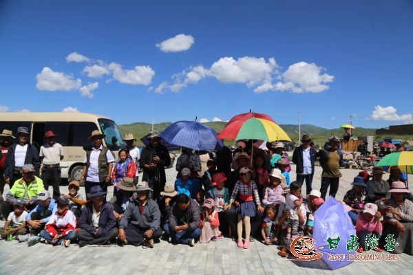 在達麥鄉(xiāng)與甘加鎮(zhèn),由于受24日成功首演的積極影響,熱情好客的藏鄉(xiāng)群眾早早地便從四面八方趕往演出地,滿目虔誠期待演出開始。而在正式演出過程中,當不畏烈日當頂?shù)难輪T們將一支支優(yōu)美的舞蹈跳起來,把一首首好聽的歌兒唱起來,讓一曲曲悅耳的二胡、笛子、嗩吶響起來,鄉(xiāng)民們更是與演員們一般,不畏驕陽曝曬,一次次用最為清脆響亮的掌聲與喝彩表達對節(jié)目的高度認可、對演員們的由衷敬意與褒獎。美妙的音符、翩然的舞姿與蔚藍的天空、潔白的云朵、青草的芬芳如此完美地相融,勾勒出一幅意境十足的草原水墨。