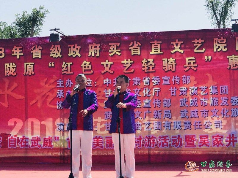 2018年7月28日早,由甘肅省委宣傳部主辦,甘肅省文化廳、省演藝集團(tuán)承辦,武威市委宣傳部、武威市旅發(fā)局、武威市文廣新局、武威市文化旅游協(xié)會(huì)協(xié)辦,甘肅省曲藝團(tuán)作為演出單位組織實(shí)施的隴原“紅色文藝輕騎兵”文化惠民演出活動(dòng)走進(jìn)了武威市涼州區(qū)吳家井鄉(xiāng)。