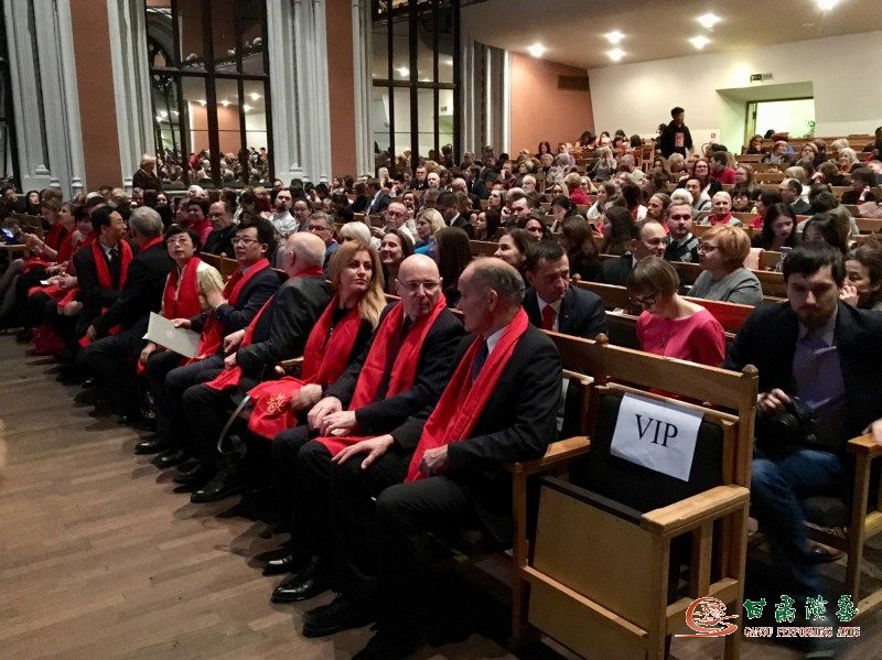 1月26日晚,拉脫維亞首都里加大吉爾德音樂廳中國年味濃濃,座無虛席,有著較高音樂素養(yǎng)的拉脫維亞觀眾用心聆聽來自遙遠(yuǎn)東方中國的旋律。當(dāng)拉脫維亞經(jīng)典曲目《母親河》奏響時,全場觀眾肅然起立,隨著節(jié)奏擊掌合拍,中國藝術(shù)家將此曲所表現(xiàn)的脫維亞不屈不撓的民族精神演奏得出神入化,許多觀眾被音樂和藝術(shù)所感染,飽含熱淚,以熱烈的經(jīng)久不息的掌聲對中國藝術(shù)家致以崇高的敬意。演出結(jié)束后,觀眾沉醉于中國民樂當(dāng)中,久久不愿離場。80高齡的拉脫維亞著名漢學(xué)家、《拉漢大詞典》編篡者、拉脫維亞漢學(xué)研究和教學(xué)泰斗、拉脫維亞孔子學(xué)院拉方院長彼得·貝德高先生主動登臺用中文講話,對演出給予高度的評價和贊譽,他作為一名德高望重的漢語教學(xué)的奠基者和傳承者,從中國民族交響樂《隴上行》音樂中感受到了中國厚重的歷史和文化,聆聽到了中國西部的沙漠、黃土和民族風(fēng)情,讀懂了絲綢之路的過去和未來,稱贊這臺音樂會是他聽到的所有音樂會中最震撼、最難忘的一臺演出。駐拉脫維亞各國使團(tuán)、使節(jié)代表及拉脫維亞各界代表出席并觀看了演出。