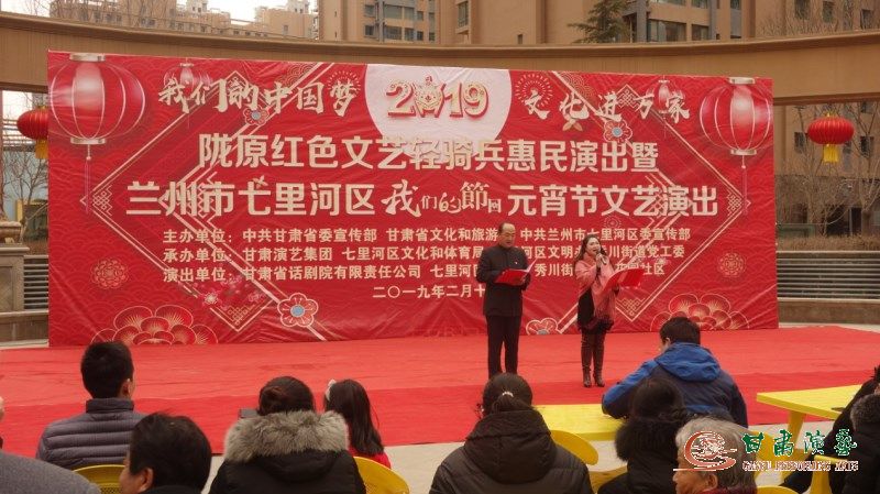 由甘肅省委宣傳部、甘肅省文化和旅游廳主辦、甘肅演藝集團(tuán)承辦的2019“我們的中國(guó)夢(mèng)”-----文化進(jìn)萬家暨隴原“紅色文藝輕騎兵”惠民演出繼續(xù)領(lǐng)跑,甘肅省話劇院隴原“紅色文藝輕騎兵”演出小分隊(duì)2月17日赴七里河區(qū)秀川街道銀灘花園為當(dāng)?shù)氐陌傩赵谡率迩八蜕狭艘粓?chǎng)精彩的文化“視聽盛宴”。