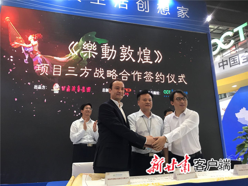 新甘肅客戶端深圳5月18日訊(新甘肅·甘肅日?qǐng)?bào)記者施秀萍)今天上午,大型沉浸式文旅演藝《樂(lè)動(dòng)敦煌》項(xiàng)目三方戰(zhàn)略合作簽約儀式在第十五屆深圳文博會(huì)華僑城展廳舉行,一部“活化”呈現(xiàn)敦煌古樂(lè)譜、藝術(shù)展現(xiàn)敦煌千年璀璨文化的大型沉浸式旅游演藝作品“呼之欲出”。