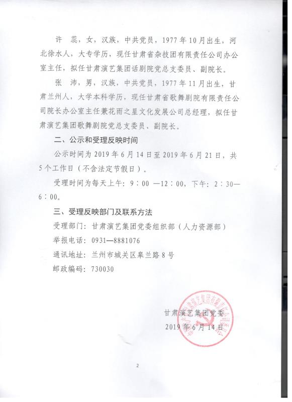 甘肅演藝集團(tuán)關(guān)于干部任前公示的公告