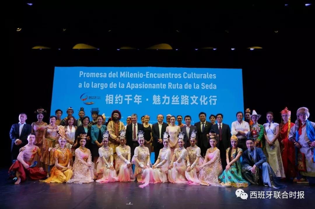6月30日晚七時(shí),由中華人民共和國(guó)國(guó)務(wù)院新聞辦公室、中華人民共和國(guó)駐西班牙王國(guó)大使館主辦,五洲文化交流有限公司承辦,北京三角傳媒文化發(fā)展有限公司協(xié)辦,甘肅演藝集團(tuán)出演的《相約千年•魅力絲路文化行》大型歌舞演出在馬德里CBA(Circulo de bellas artes)文化中心劇場(chǎng)上演。國(guó)務(wù)院新聞辦公室副局長(zhǎng)任向群,甘肅省委常委、宣傳部部長(zhǎng)陳青,中國(guó)駐西班牙大使館公參姚飛,西班牙人民黨參議院發(fā)言人科西多,甘肅演藝集團(tuán)董事長(zhǎng)陳其銀以及當(dāng)?shù)馗鹘缬讶?,僑界代表等觀看了精彩的節(jié)目表演。